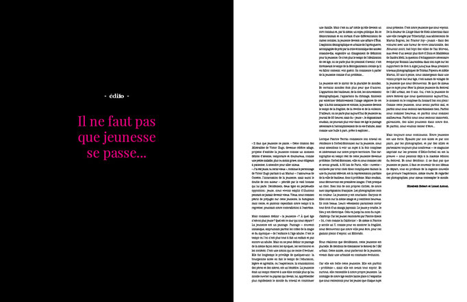 et réflexion de fond sur la photographie et la place de l'homme dans la ville, ce premier numéro de 200 pages a pour thématique la jeunesse.